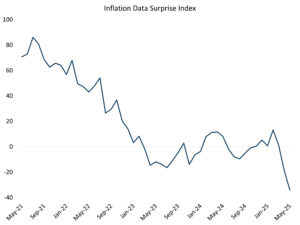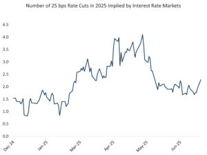 Despite Powell’s reaffirmation of a “wait and see” approach at the June FOMC meeting and in recent congressional testimony, the market appears to be pricing in a different outcome. The yield on March 2026 SOFR futures has fallen over the past few days, suggesting that investors are anticipating additional rate cuts in the coming quarters.